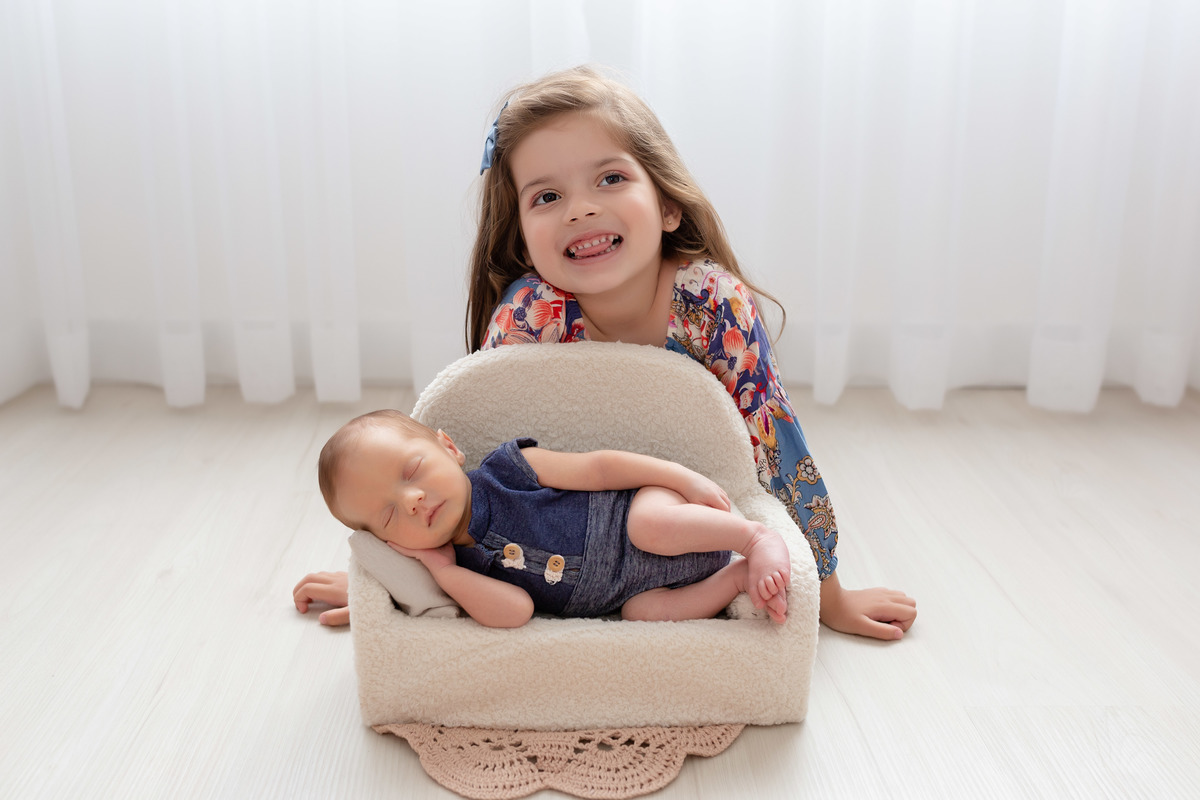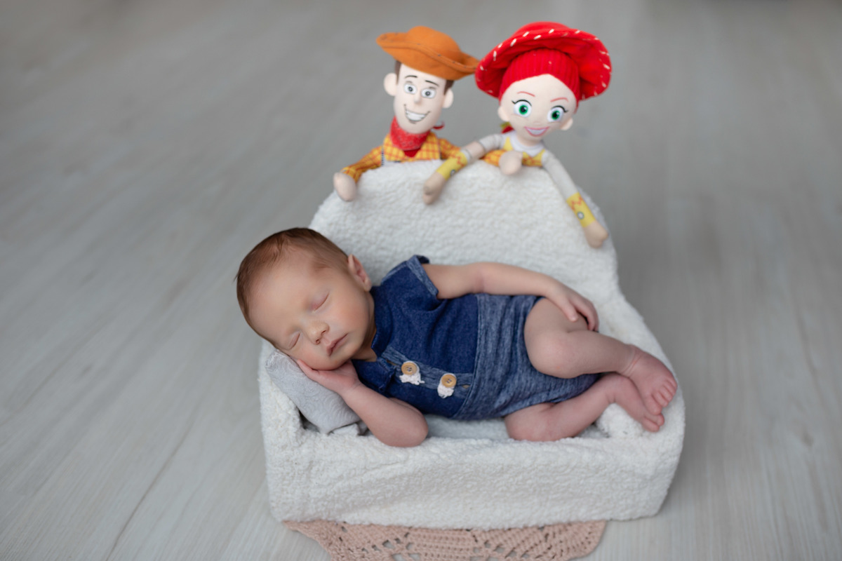 Essa família é muito especial para mim. Estamos juntos desde a gestação da primogênita Mariana, com a chegada do Vitor eu pude registrar mais uma vez um momento especial deles. O Vitor é lindo demais, com esse jeitinho meio ruivinho, deu todo um charme para o ensaio. Os pais trouxeram alguns enfeites do quarto e pediram para adicionar no ensaio, por isso temos essa foto com os personagens do Toy Story, do qual a irmã também é apaixonada.